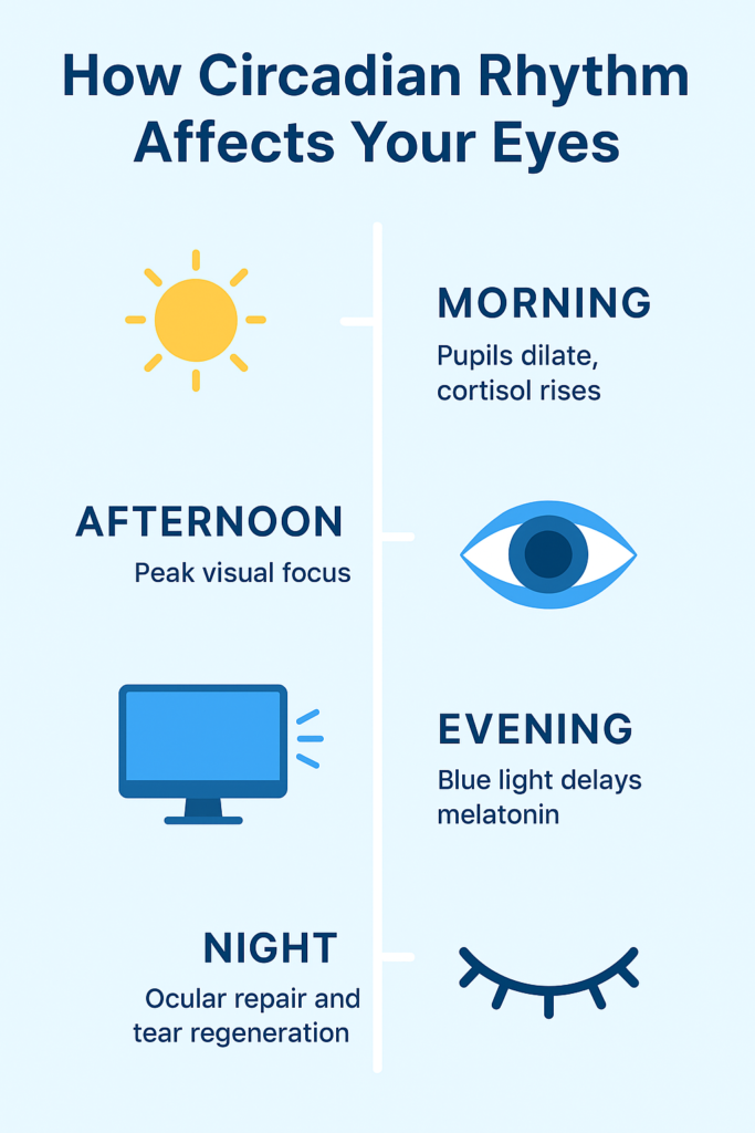 When your circadian rhythm is disrupted β by late-night scrolling, artificial light, or irregular sleep β it affects not only your energy and mood but also your eye function.